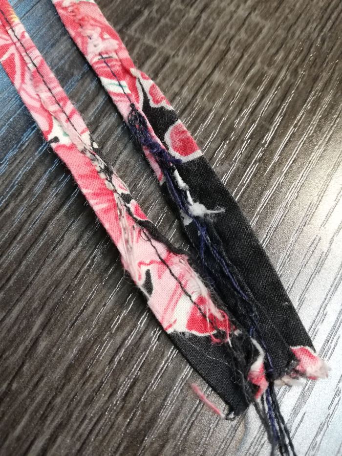 内側で結ぶリボンにほつれあり